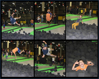 We met up with Grandma Candy and Isabelle, Eli, and Ava at the trampoline park after dinner. We were sure to wait a half hour after eating, though. :) Needless to say, we had an absolute blast!! Danny and Ace had an especially good time trying to do some serious flips. Good times!