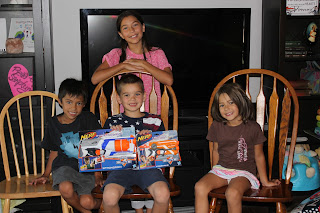 The kids had so much fun playing, loudly, all...day...long. :) We parents got a kick out of watching Johnny and Luke go from best friend to mortal enemies and back again. I won't lie though, we were anxious to get the kids to bed and lower the decibel level in the house! Danny, Justin, Toshi, and I enjoyed some dessert and a lot of awesome conversation after the kids finally retired, and just like college kids we stayed up way too late. :) We're so glad these guys are finally living close to us again!