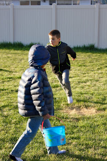 The egg hunt was a blast, as usual! There were so many eggs, and Danny and Matt made sure to make them harder for the big kids this year. :) And Grandma Candy had a special egg for each grandkid with their name on it (minus Joey, since he was too young to hunt), and a bunch of "change eggs" for the kids to find. It was hilarious to watch the older kids shake each egg they found. If it didn't jingle, they threw it back! I think we'll quit spending money on candy they don't need and start filling the eggs with change from now on!